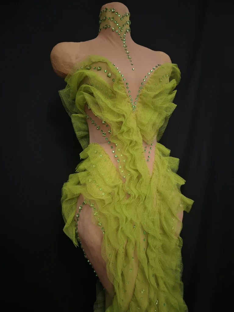 Elegant Sparkly Green Rhinestones Mesh Sheer Ruffle Maxi Dress Celebrate Eveing Birthday Party Nightclub Red Carpet Stage Wear 144,43 $ Le prix initial était : 144,43 $.80,61 $Le prix actuel est : 80,61 $.