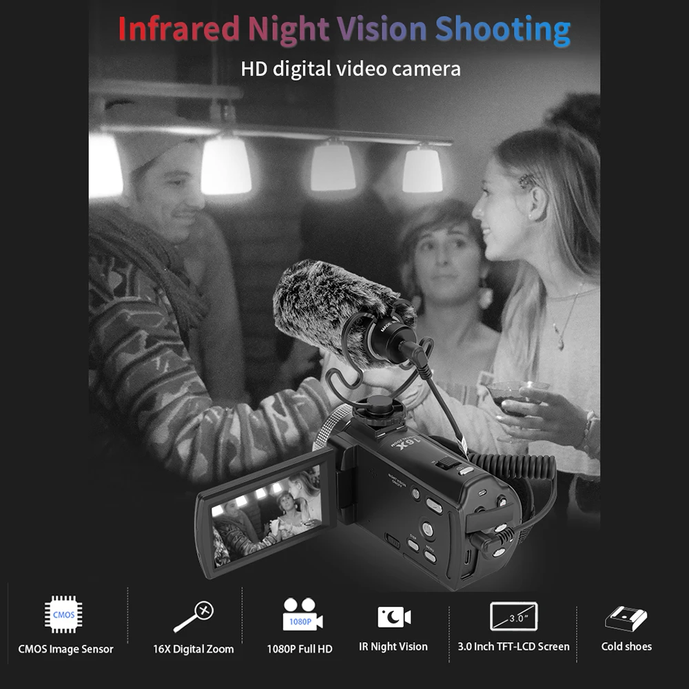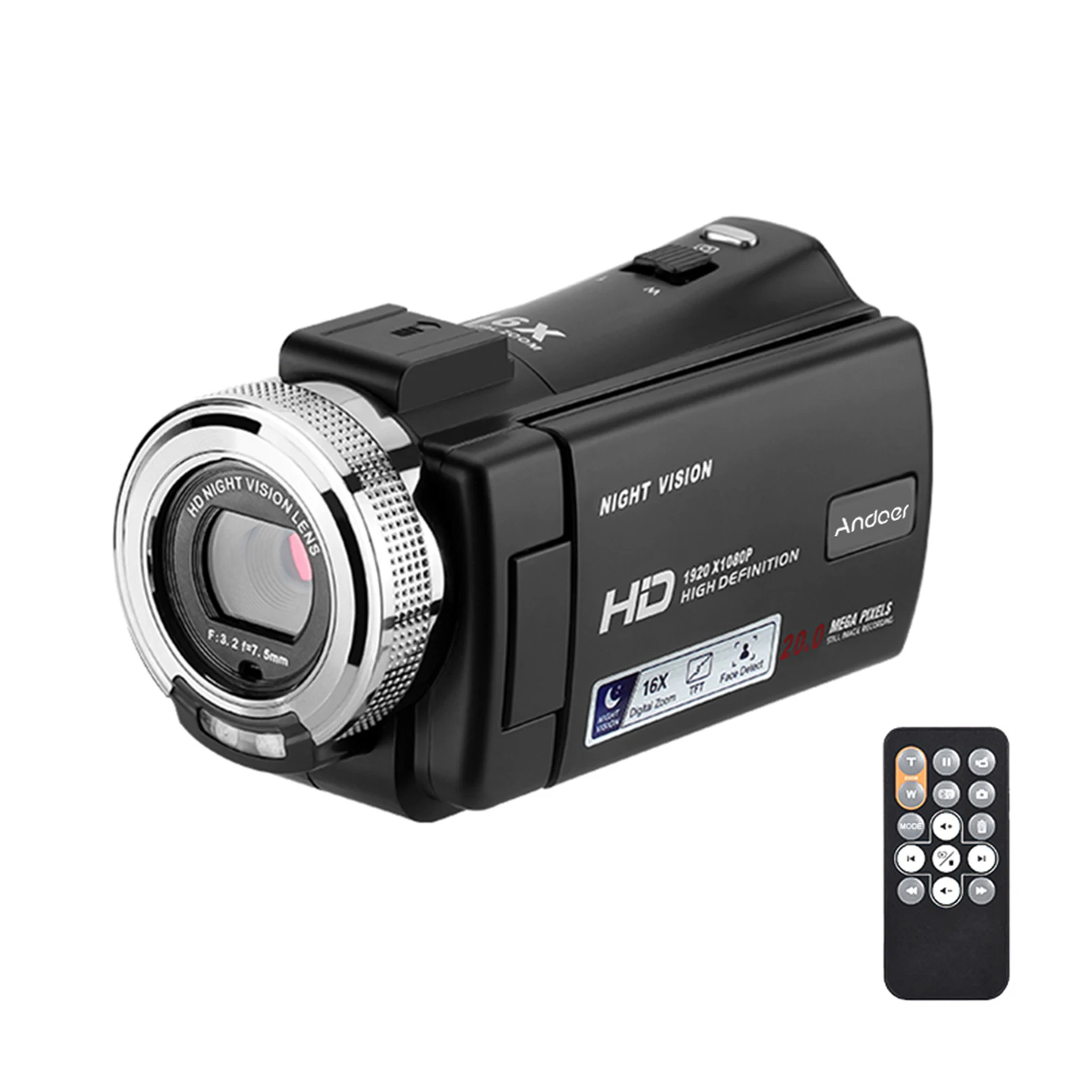 1080P Full HD 16X Digital Zoom Recording Video Camera Portable Camcorder with 3.0 Inch Rotatable LCD Screen Remote Control Maximum 30MP Support Face Detection