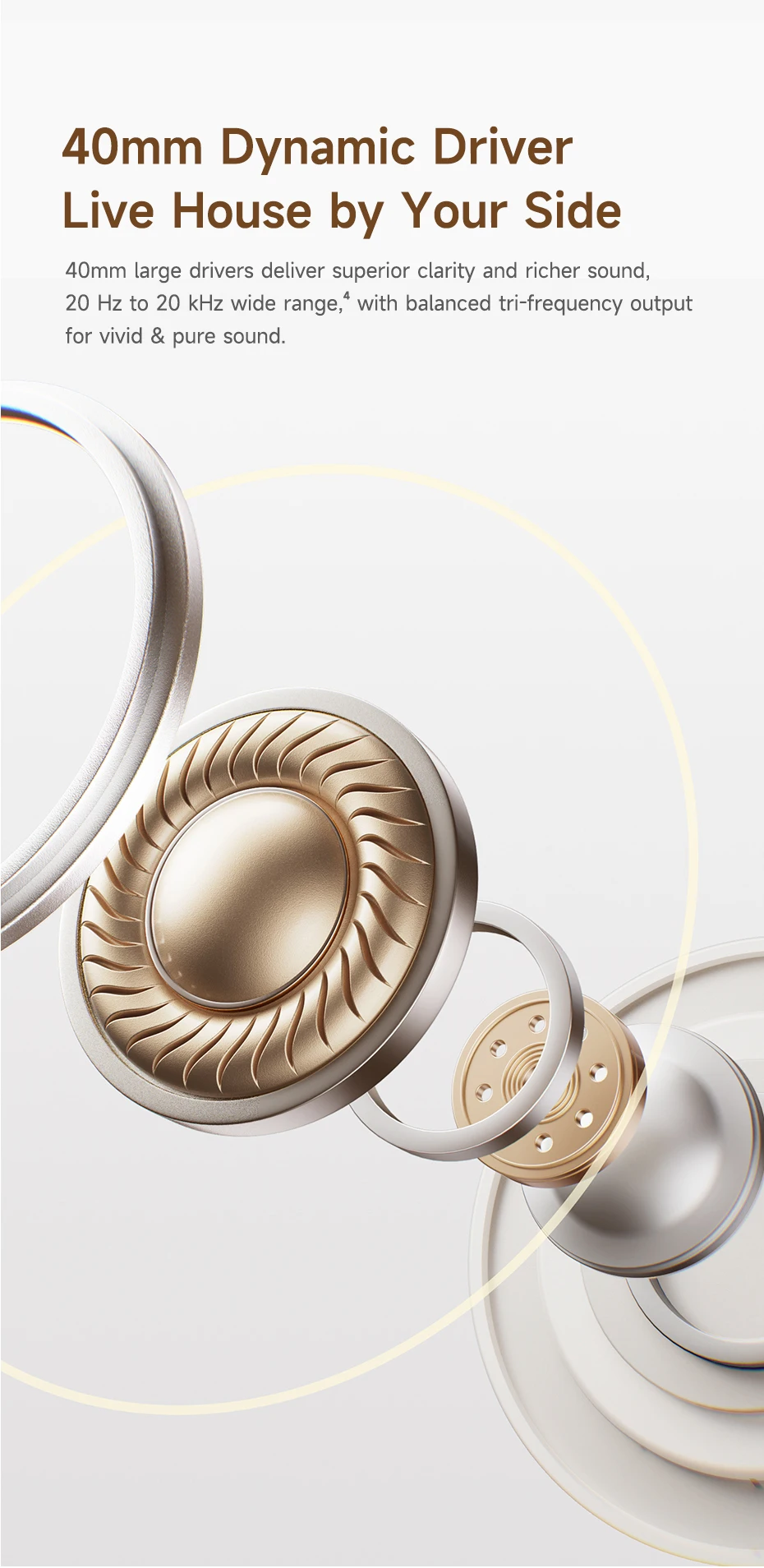 40mm large drivers deliver superior clarity and richer sound 20 Hz to 20 kHz wide range, with balanced tri-frequency output for vivid & pure sound.