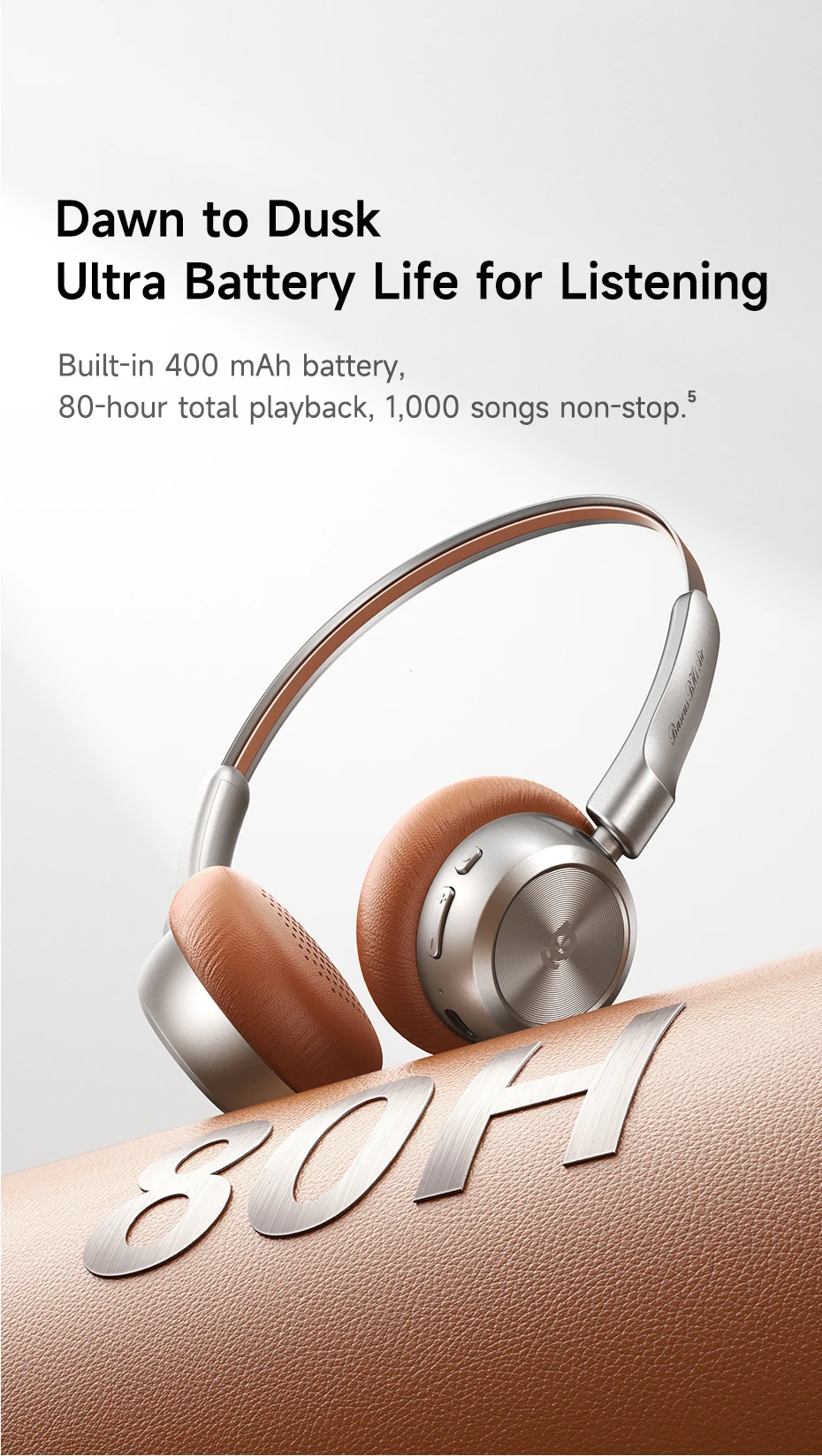Built-in 400mAh battery, 80-hour total playback, 1,000 songs non-stop.