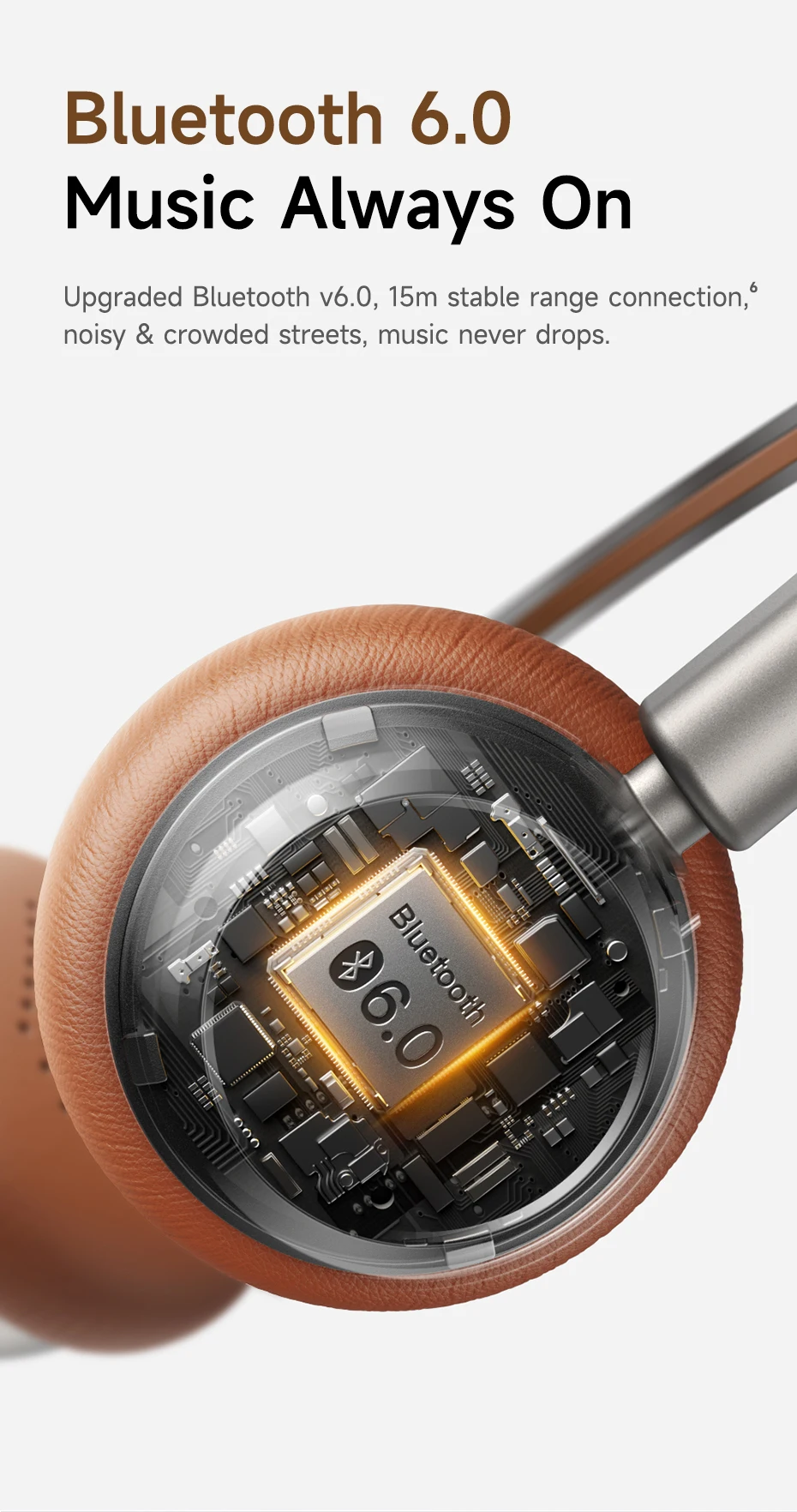 Upgraded Bluetooth v6.0, 15m stable range connection, noisy & crowded streets,music never drops.