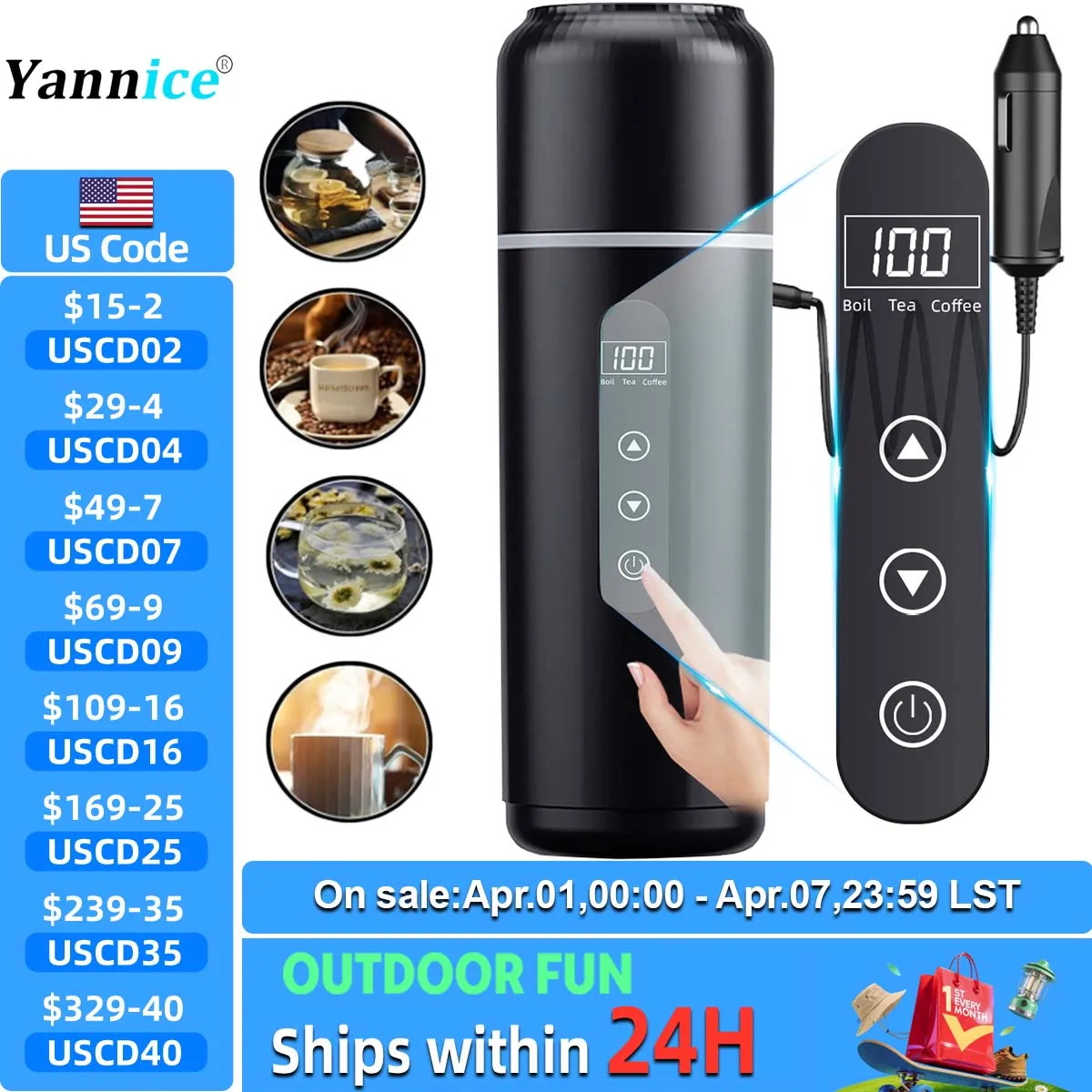 Electric kettle 12V 24V portable car heating cup 500 ml travel heating smart stainless steel insulation artifact OLED display