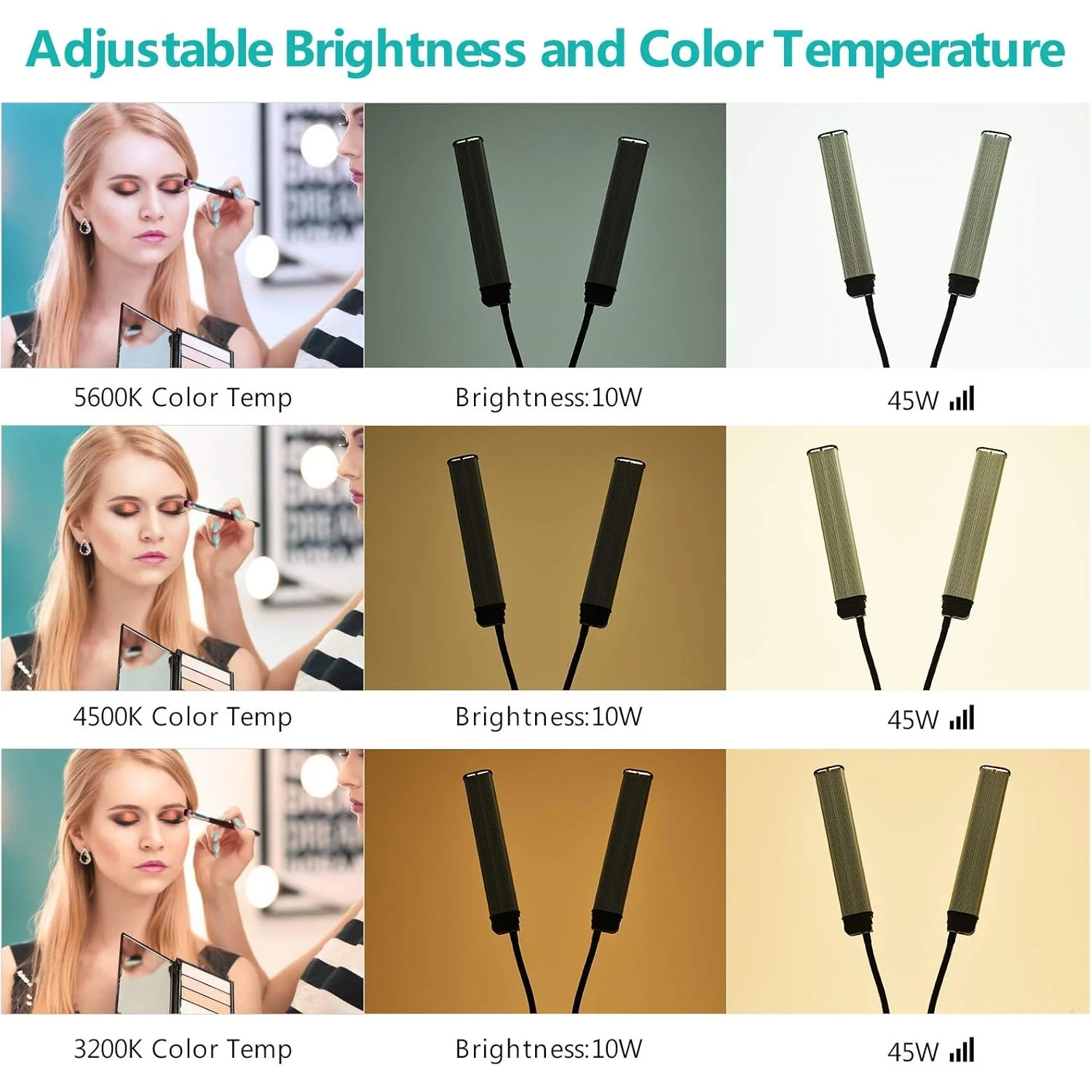 Flexible Double Arms LED Fill Light Bi-Color Dimmable Beauty LED Video Lights 3200K-4500K-5600K 3 Light Modes 45W with Phone Holder for Portrait Photography Live Streaming Vlogging Makeup