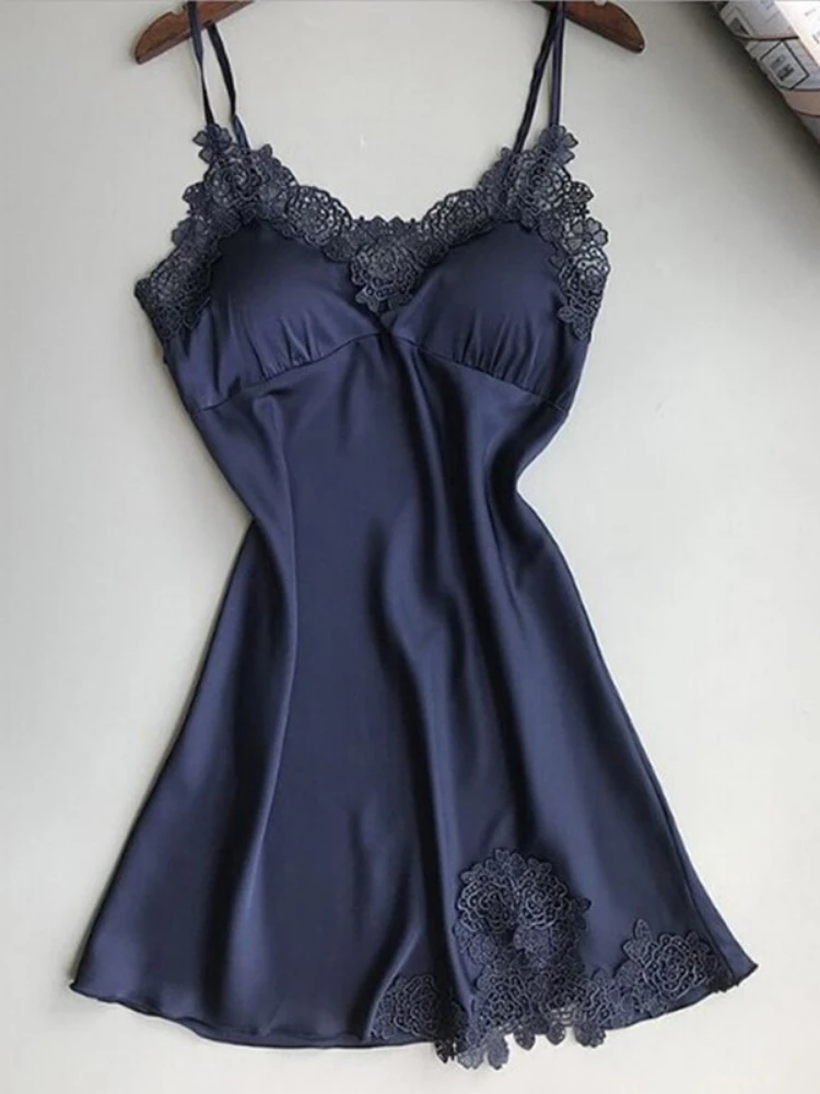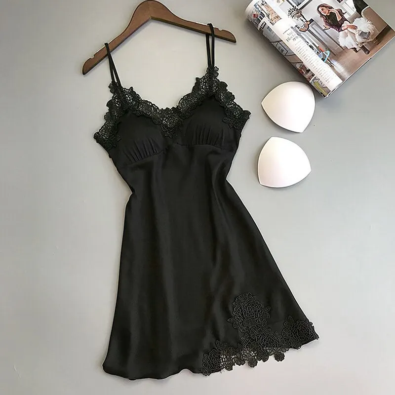 Ladies Sexy Silk Satin Night Dress Sleeveless Nighties V-neck Nightgown Nightdress Lace Sleepwear Nightwear For Women S-XL