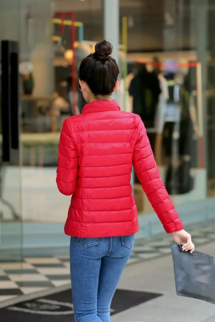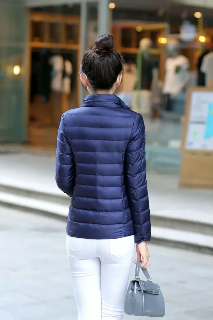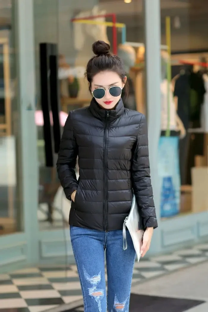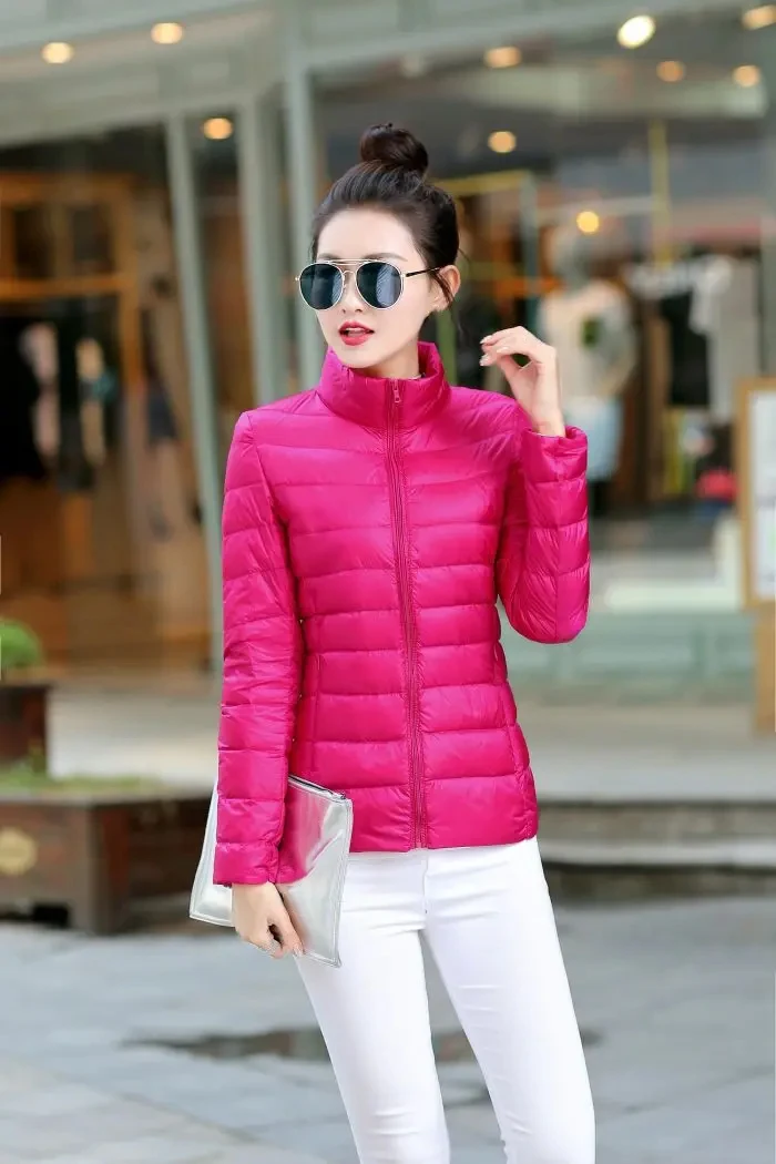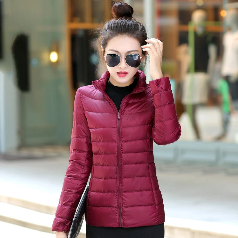 Hello, The down jacket is not stretchy. It is Asian size. Please order one or two size up. Thank you.
