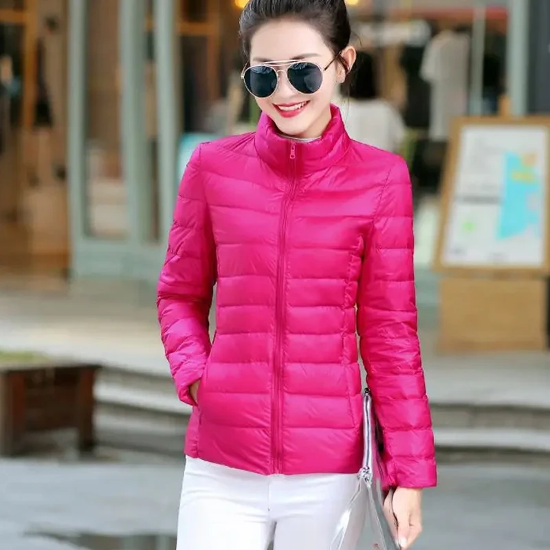 Hello, The down jacket is not stretchy. It is Asian size. Please order one or two size up. Thank you.