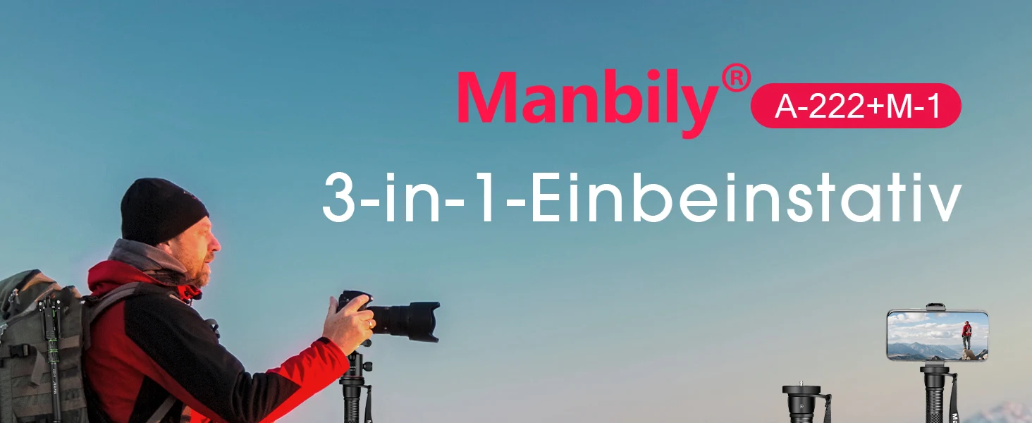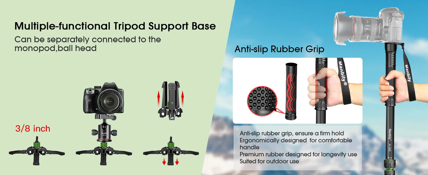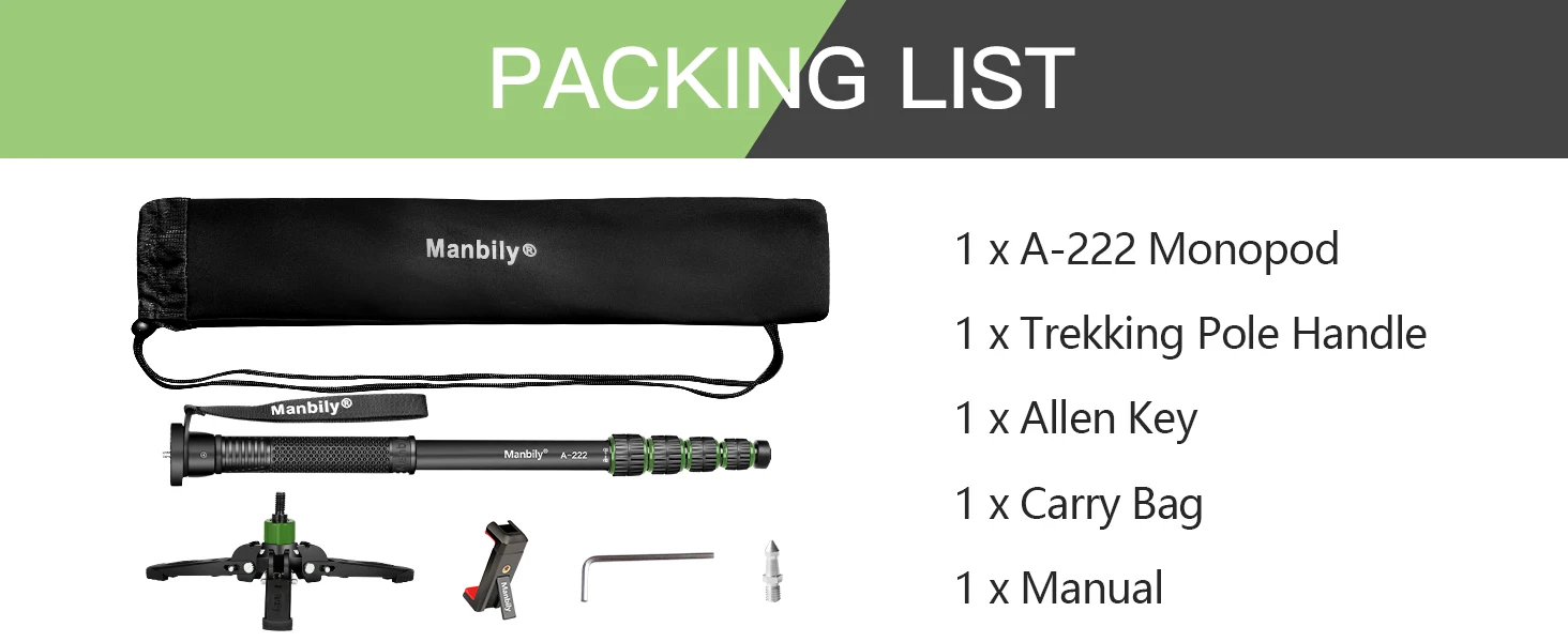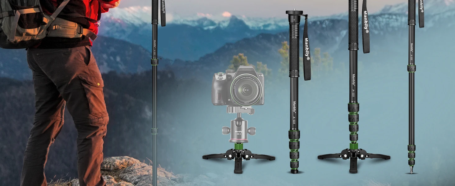 Camera Monopod: The Manbily A222PRO travel monopod weighs only 672g and folds down to 54cm, making it an ideal travel, sports, and wildlife photography companion – compact and lightweight