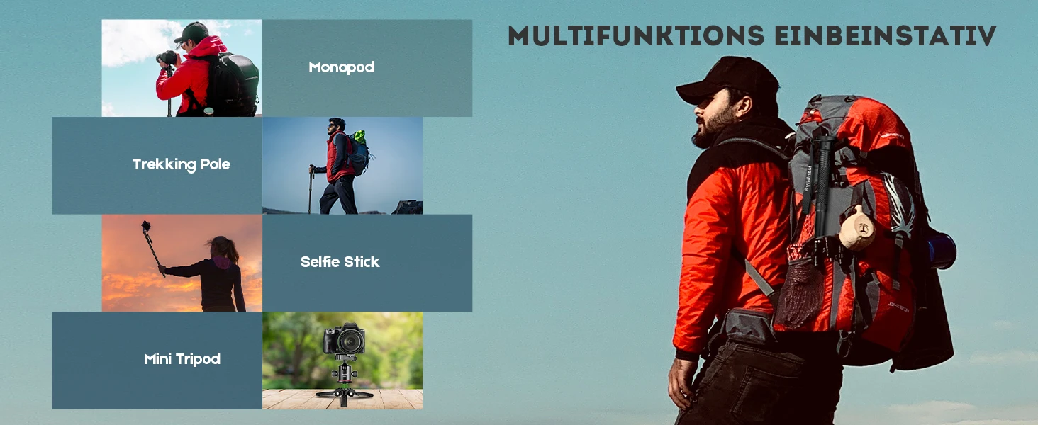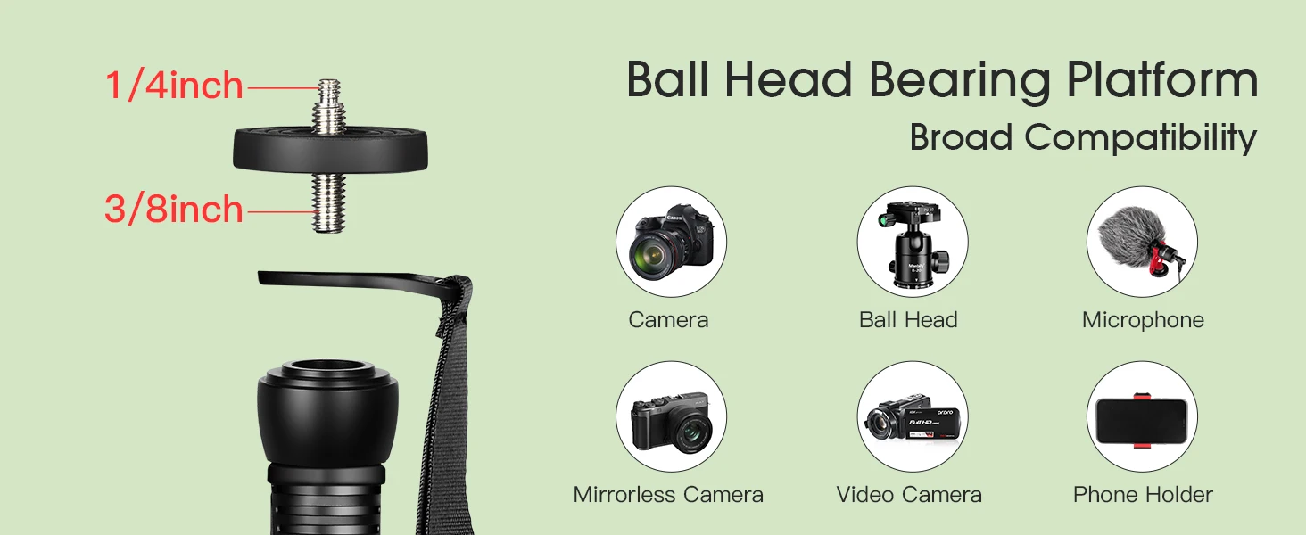 Add a monopod Walking Stick(not included) : Attach the included handle to use the monopod as a walking stick,suit different usage scenarios. The monopod enables you to record for hours with minimum effort.