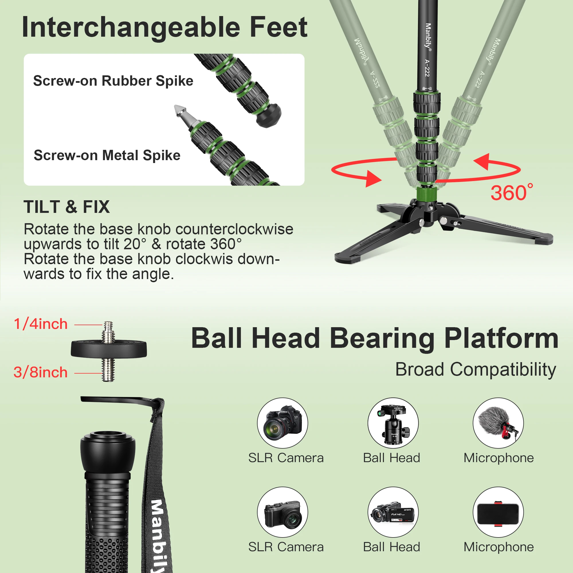 3.A222-PRO Monopods +M-2 tripods base stand (as shown in the picture)