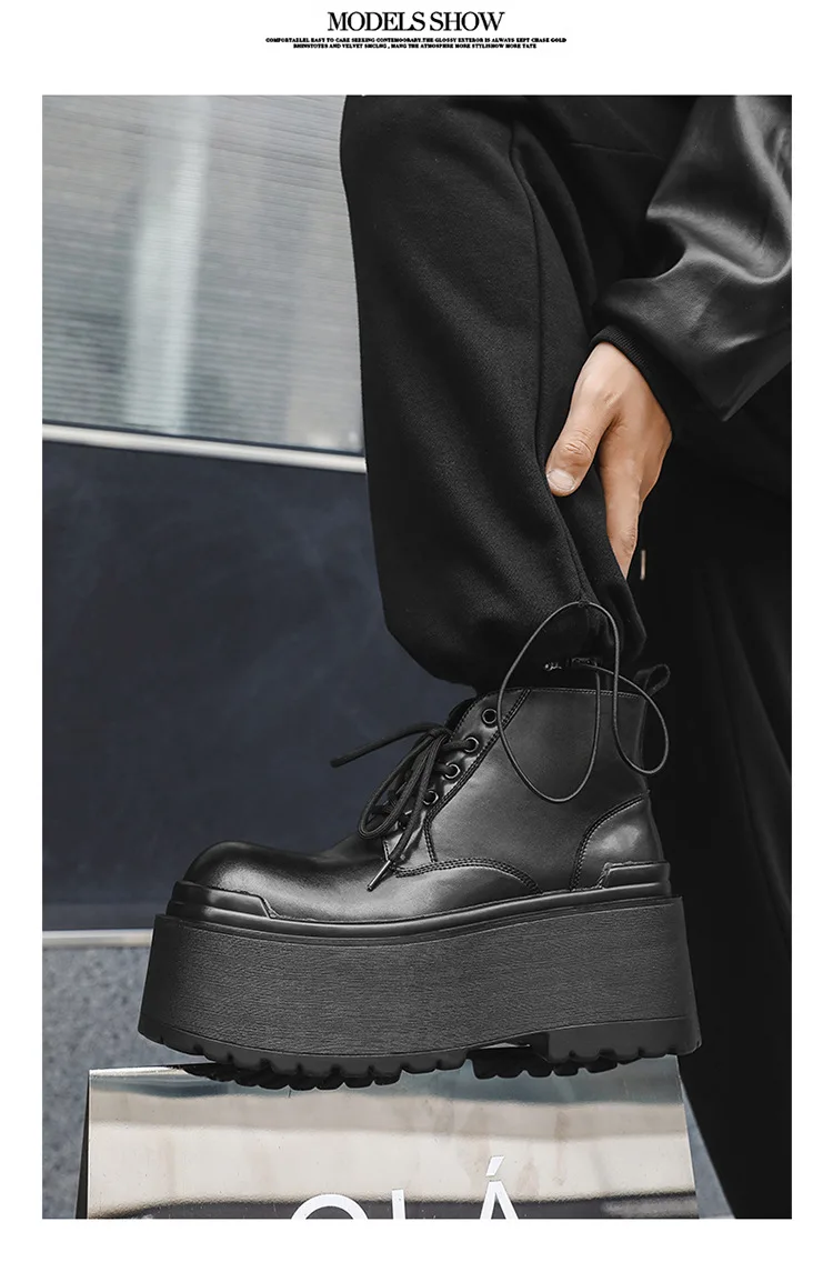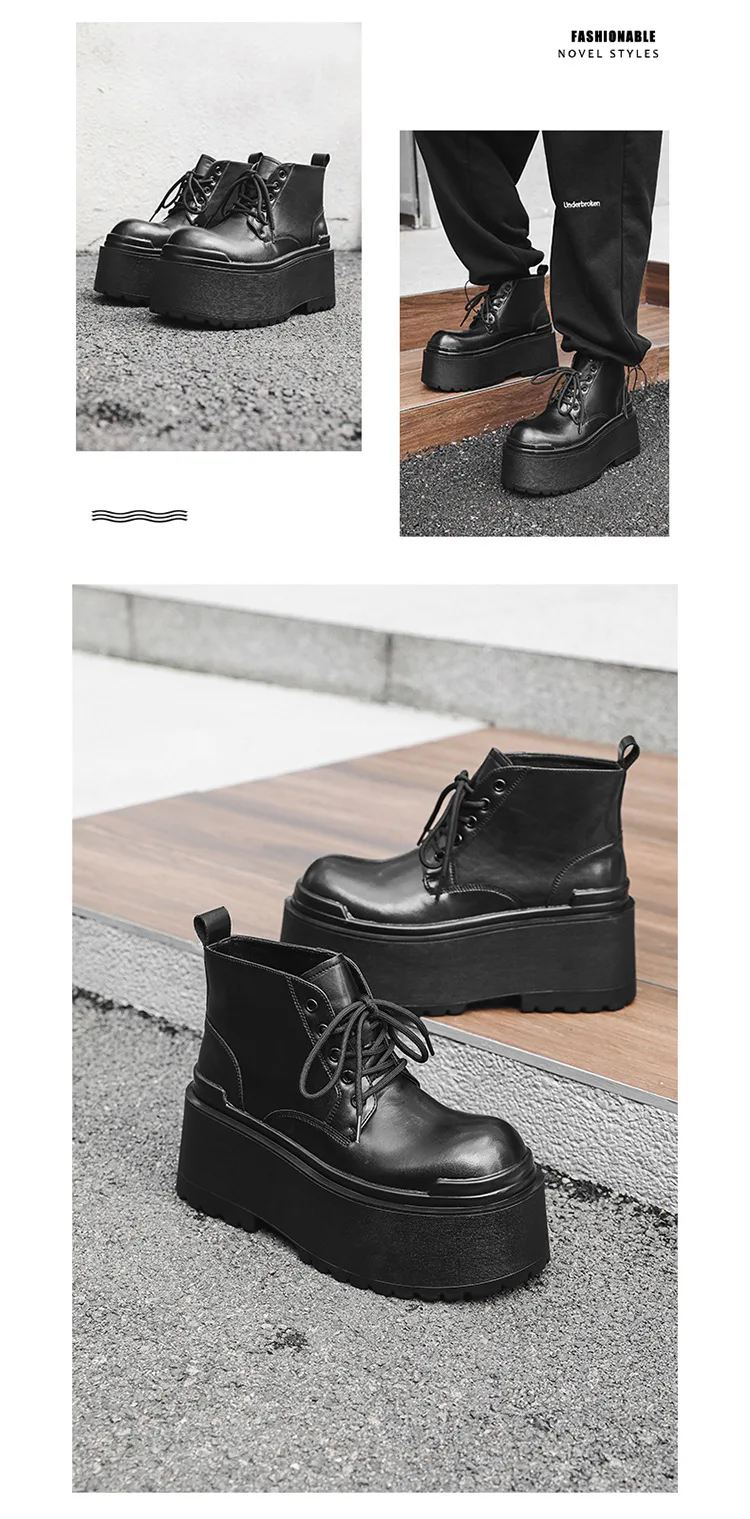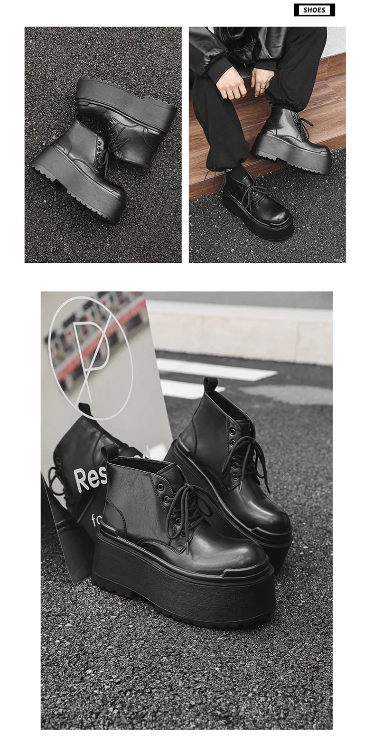 Men’s 2025 Autumn British Style Vintage Work Boots Waterproof Platform Ankle Boots Chunky Sole Fashion Casual Outdoor Shoes