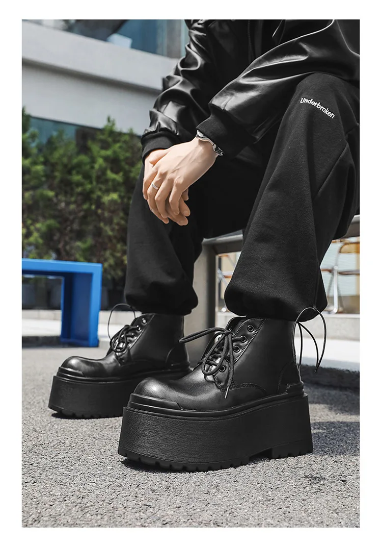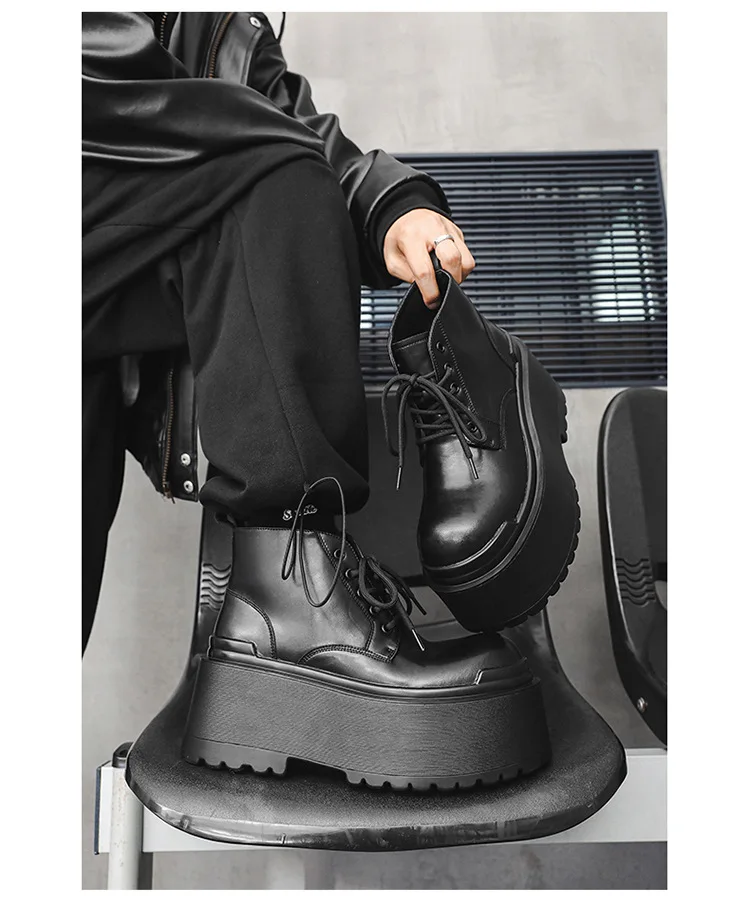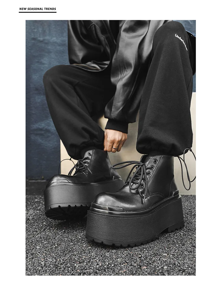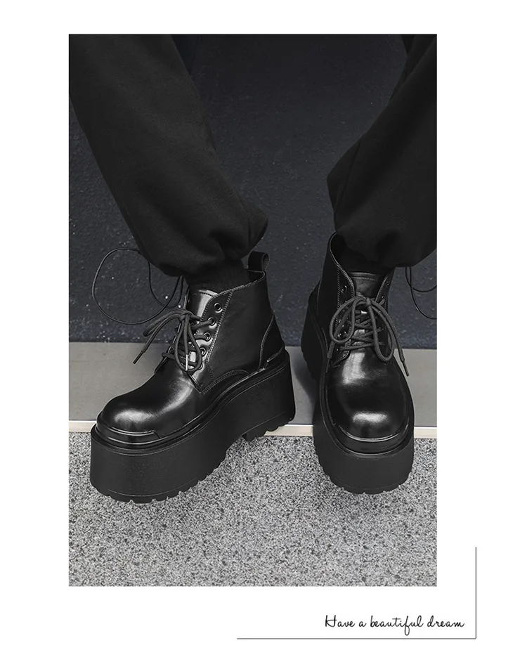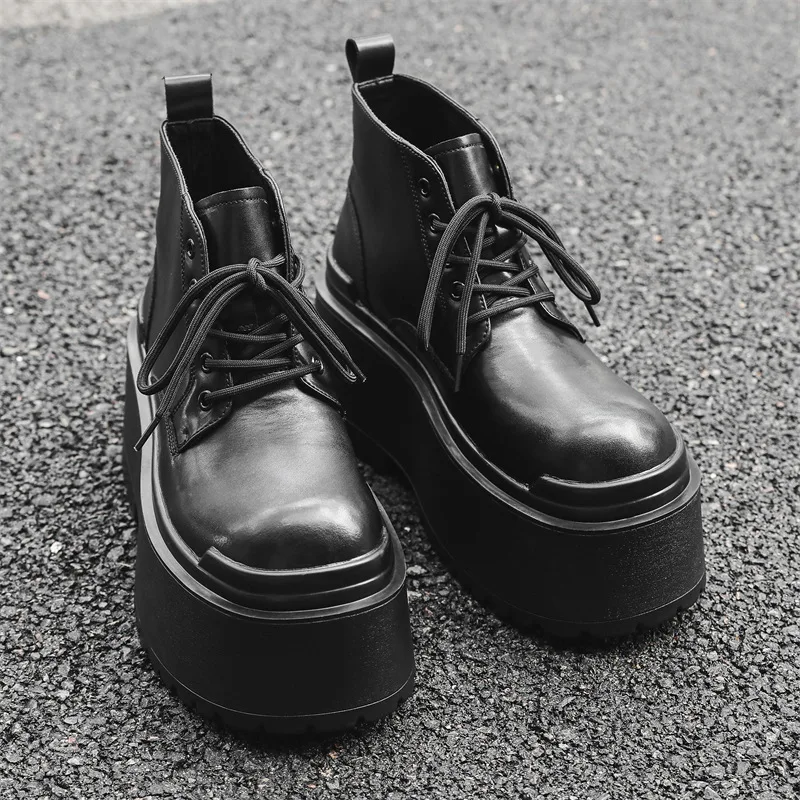 Men’s 2025 Autumn British Style Vintage Work Boots Waterproof Platform Ankle Boots Chunky Sole Fashion Casual Outdoor Shoes