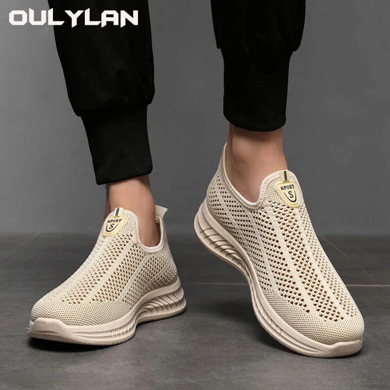 Oulylan 2025 nouveaux hommes respirant course chaussures de sport décontractées léger anti-dérapant résistant à l’usure maille chaussures
