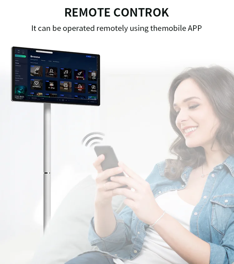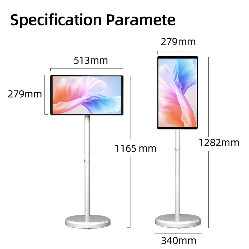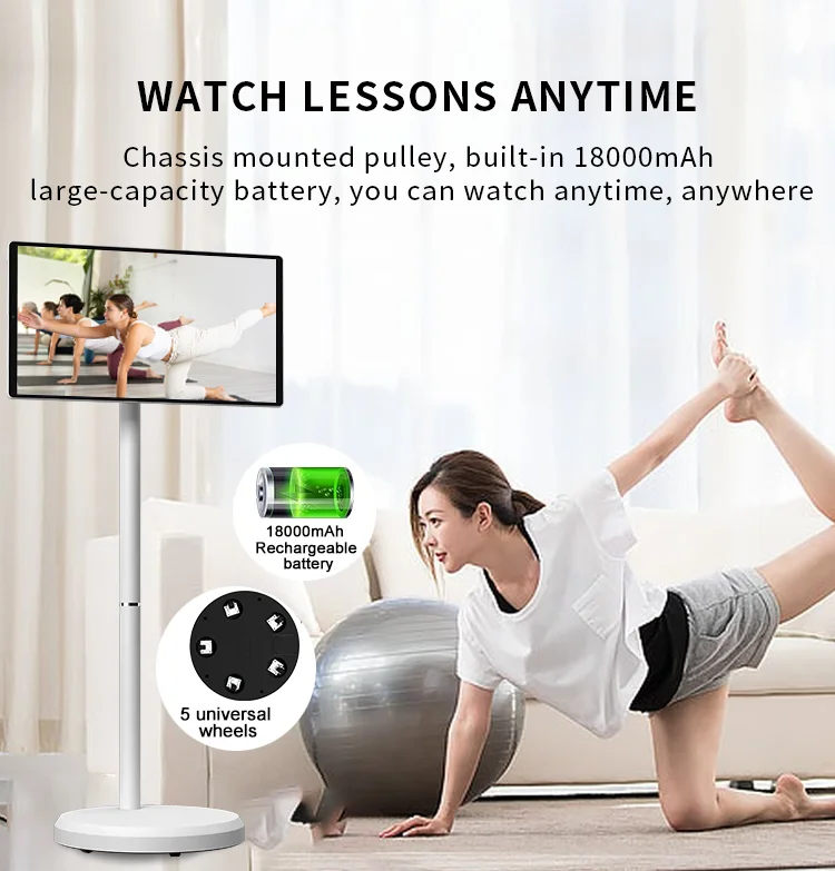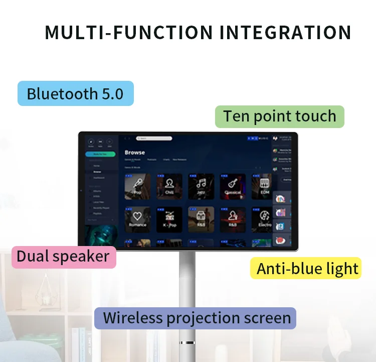 Ultra-narrow frame, bottom pulley design, high-definition IPS ten-point touch screen with anti-blue light eye protection function, 8core processor , new 12 Android system. Wireless screen projection, full platform support, 18000MAH large-capacity battery, battery life up to 5 hours. It is a good partner for home, office, picnic, party karaoke, yoga, and children’s study.
