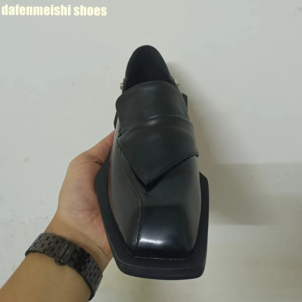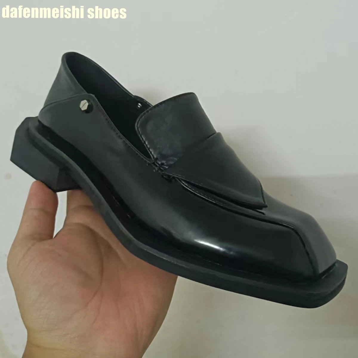 Product Name:square toe black/white mixed color loafers for women 2023 new summer platform leather shoes thick heel men/women fashion shoes