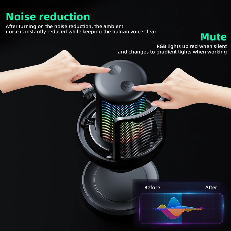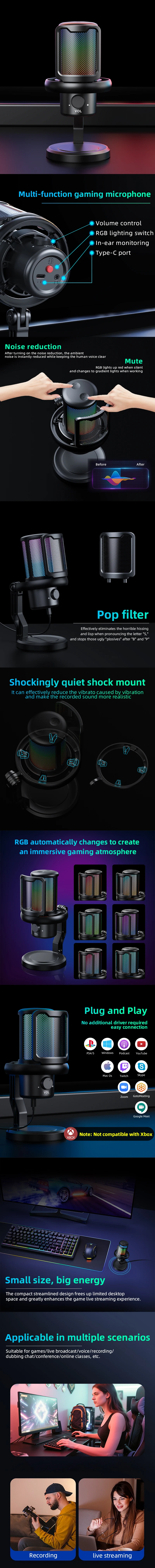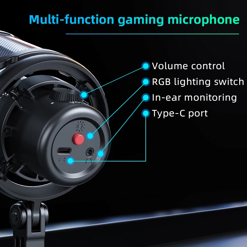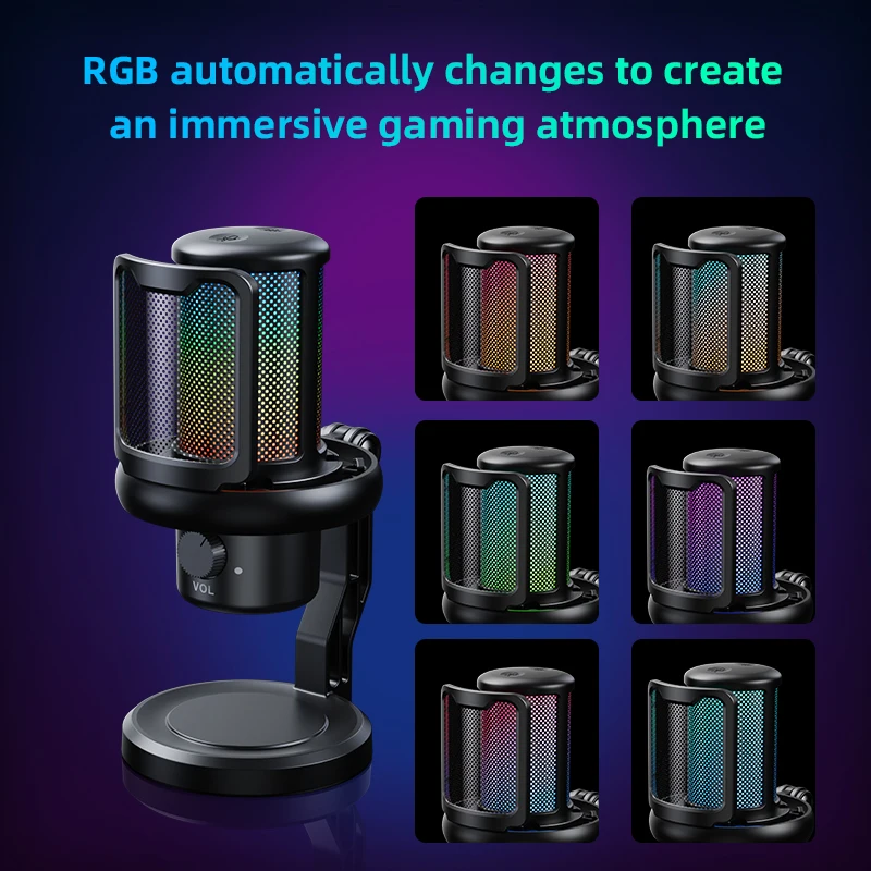 Elevate your gaming experience with the RGB lighting of this USB microphone, adding a touch of style to your setup.