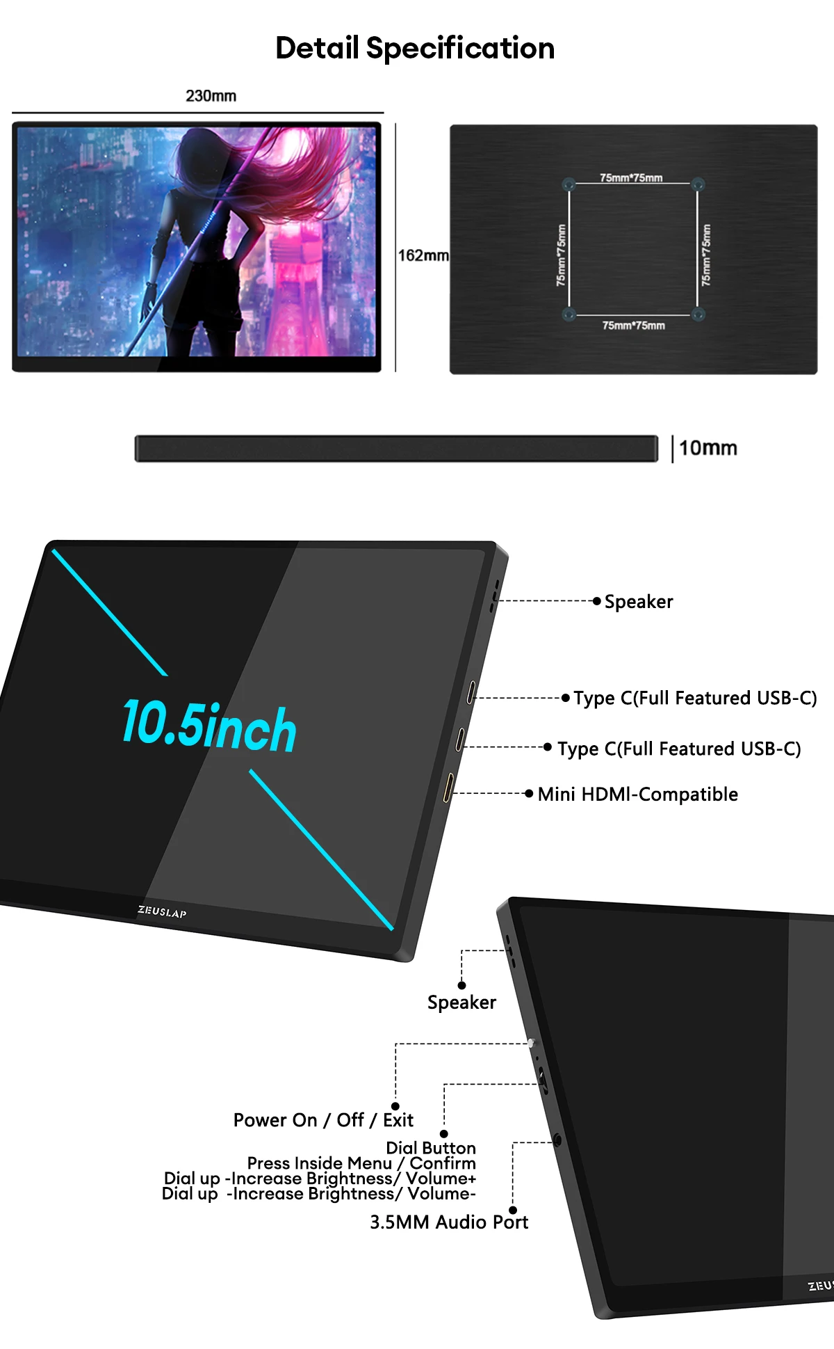 *Perfect as a secondary screen for desktop PCs, a large display for smartphones, a navigation screen for cars, or a compact monitor for outdoor applications.
