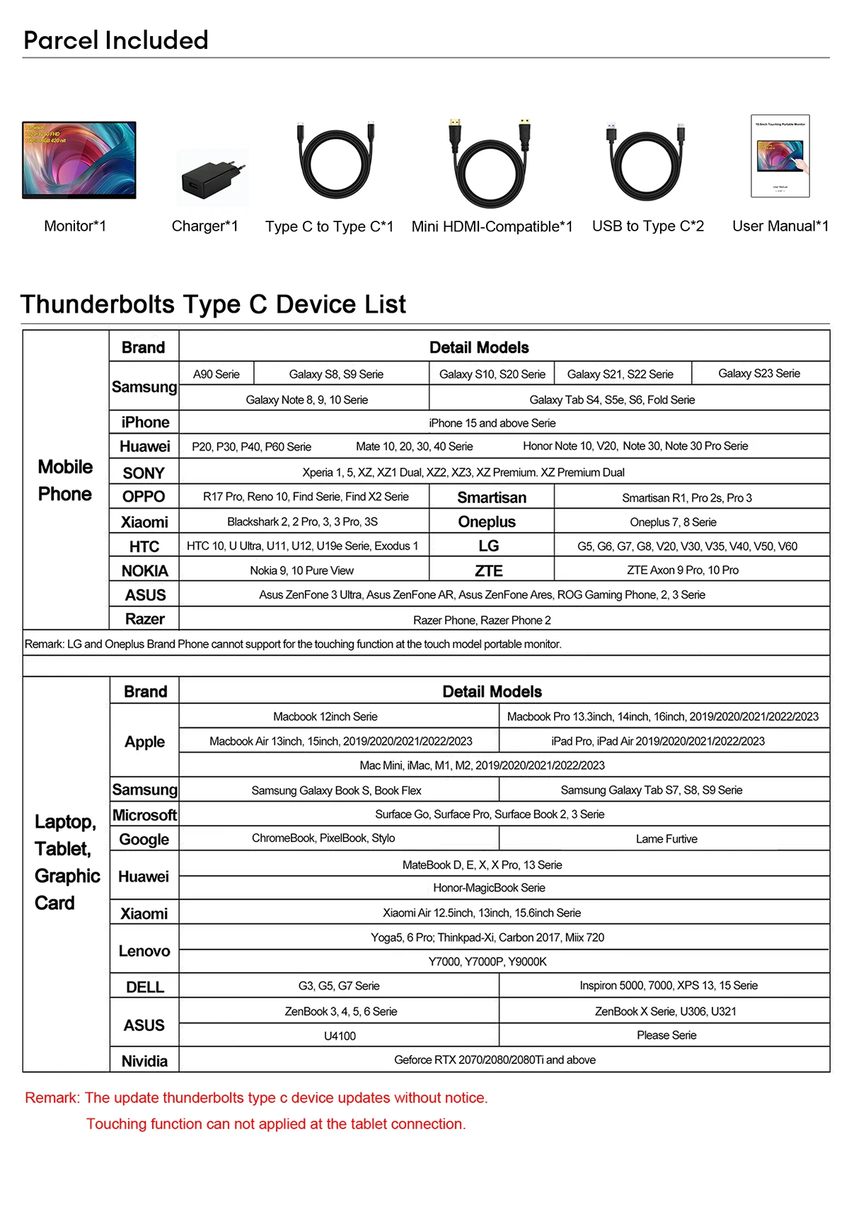 2. Use a USB to Type-C cable (connect to the middle monitor port) for the touch function.