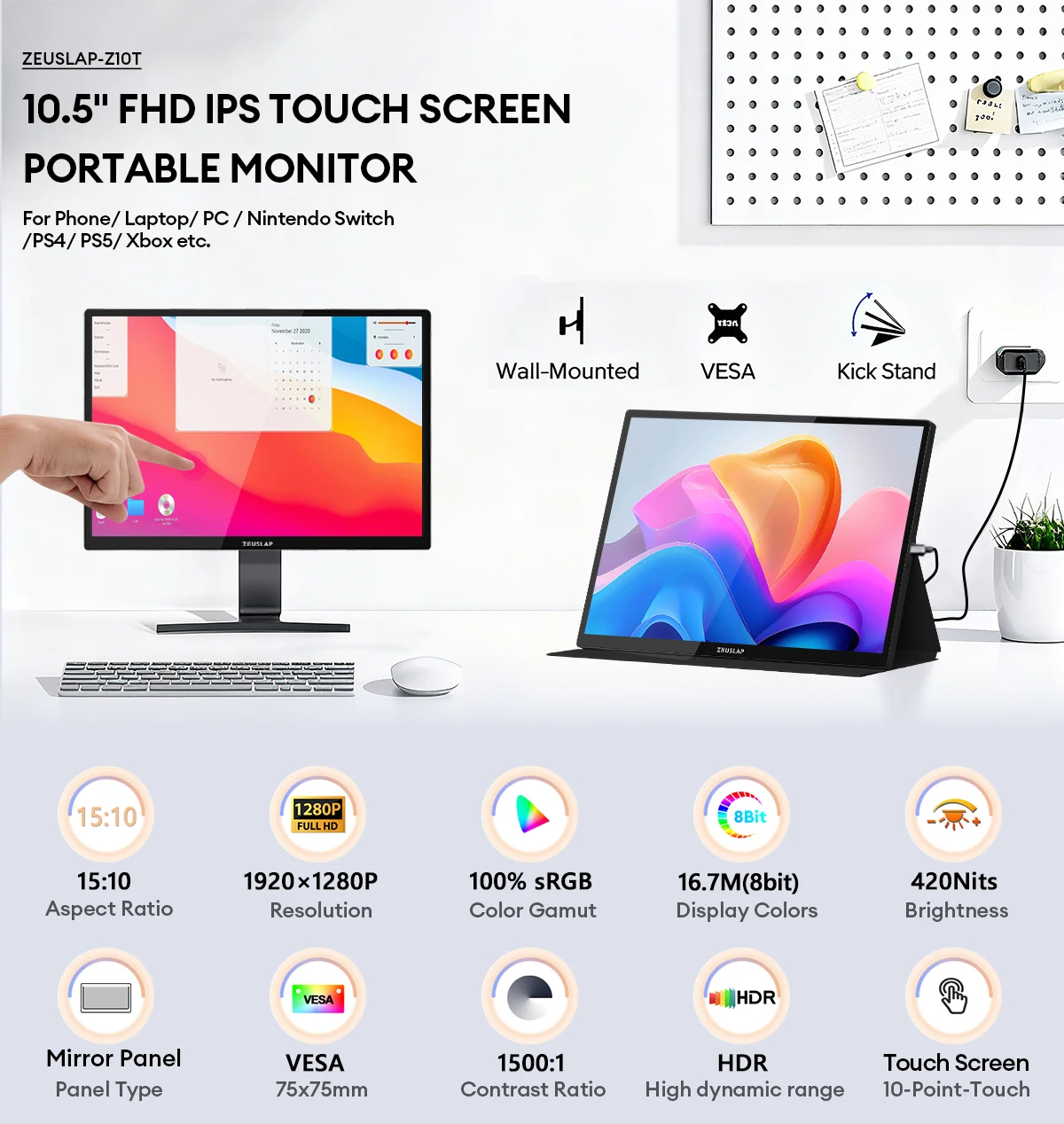 *10.5-inch FHD+ IPS Screen: Experience sharp clarity with 1920*1280 resolution and a modern 15:10 aspect ratio, offering more vertical space for work and play.
